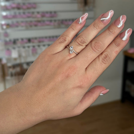 Apzeltīts gredzens ar diviem ovāliem cirkonijiem