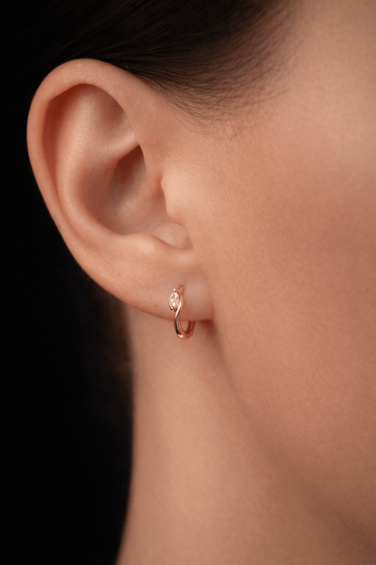 Apzeltīti riņķīšu auskari ar lielu solitaire cirkoniju