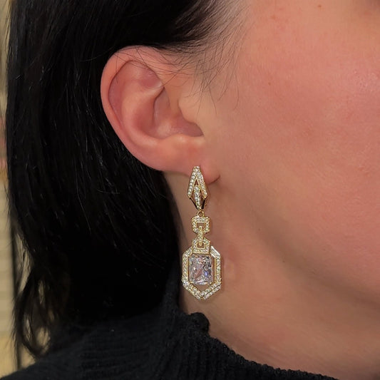 Sofia - 18k Gold-Plated Trillion-Cut Crystal Earrings