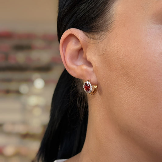 Apzeltīti riņķīšu auskari ar sarkanu cirkoniju