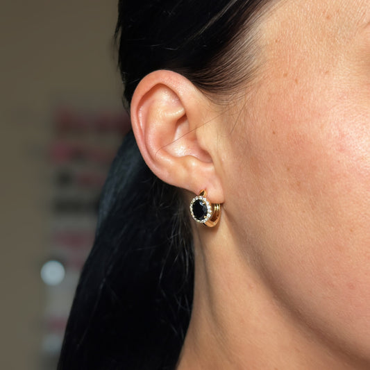 Noir Éclat Hoops – apzeltīti riņķīšu auskari ar melnu cirkoniju