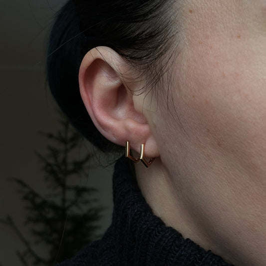 Apzeltīti riņķīšu auskari ar taisnstūra cirkoniju