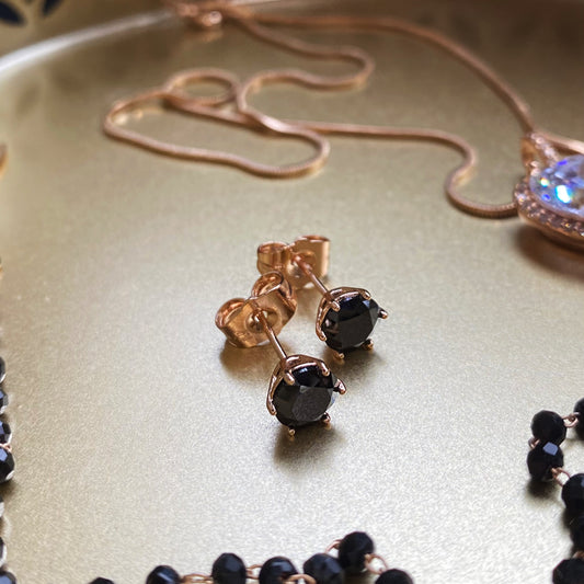 Apzeltīti nagliņu auskari ar melnu kristālu