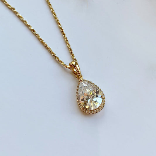 Apzeltīta kaklarota ar lāses formas kristālu (dzidra un rozā)