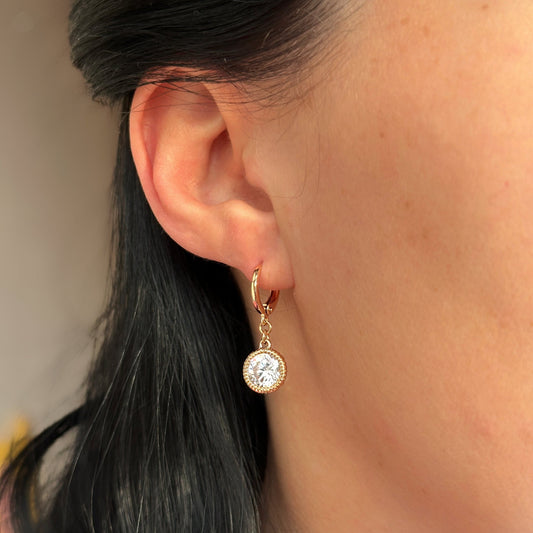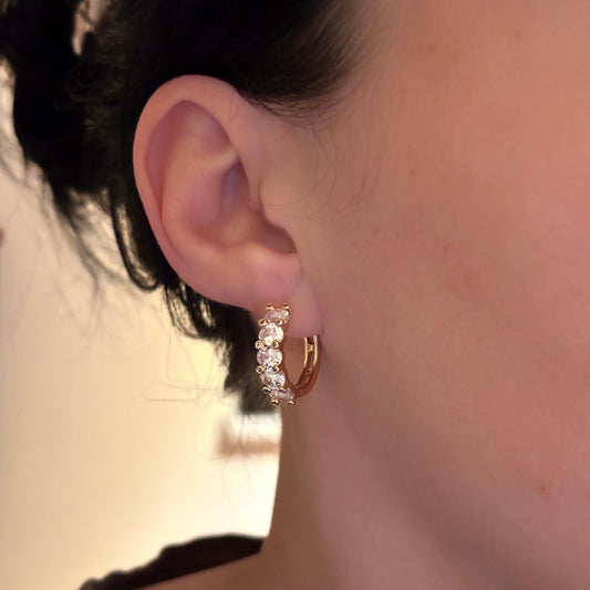 Apzeltīti riņķīšu auskari ar dzidriem cirkonijiem