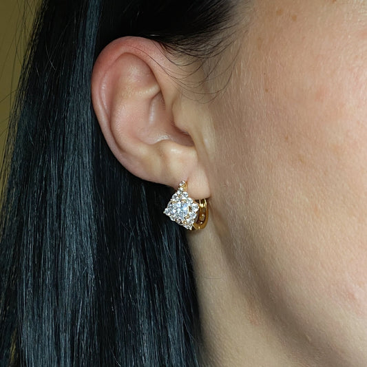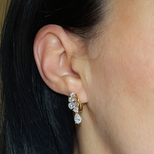Apzeltīti auskari ar cirkonijiem un nokarenu lāsīti