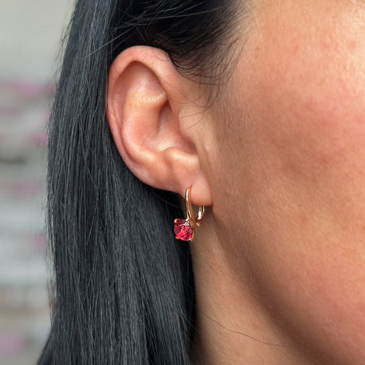 Apzeltīti auskari ar sarkanu cirkoniju un angļu aizdari