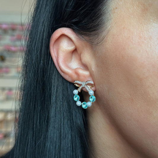 Nagliņu auskari ar bantīti un ziliem kristāliem