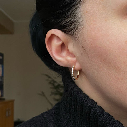 Apzeltīti riņķīšu auskari ar taisnstūra cirkoniju