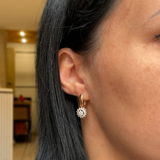 Ziedu elegance – apzeltīti auskari ar cirkonijiem