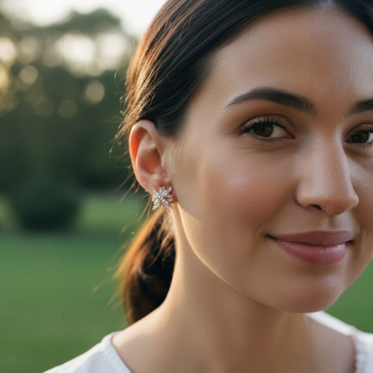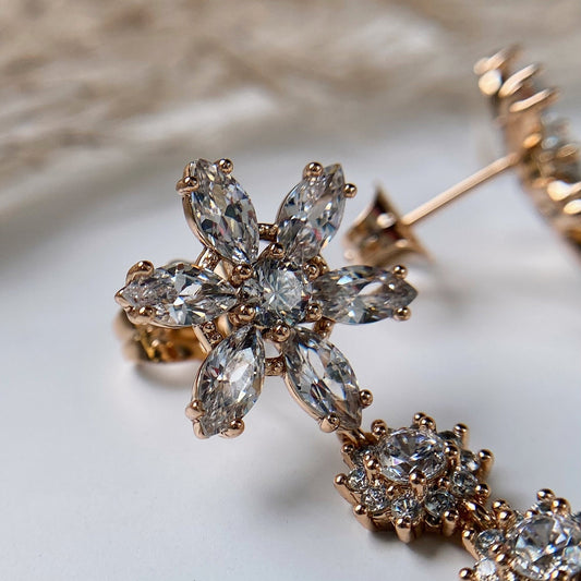Apzeltīti ziedu auskari ar dzirkstošiem cirkonijiem
