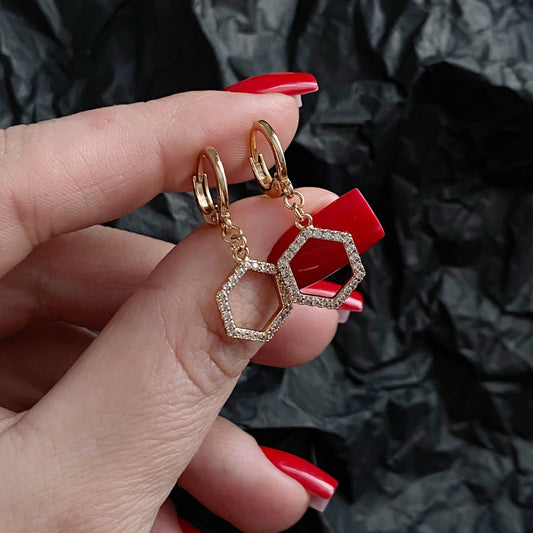 Apzeltīts rotu komplekts ar sešstūra kristāliem