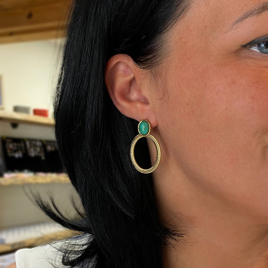 ATLAIDEOvāli auskari ar zaļu akcentu