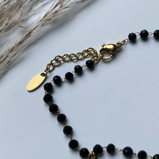Rokassprādze ar melniem kristāliem un krustiņiem
