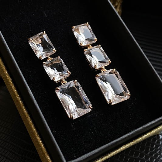 Crystal Drop – Grezni apzeltīti auskari ar trīs kristāliem