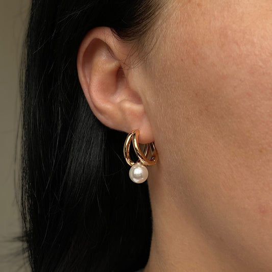 Pearl Twist – Apzeltīti auskari ar pērlēm un cirkonijiem