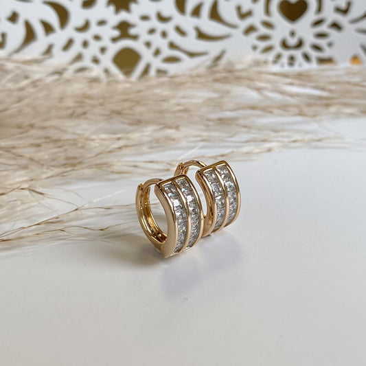 Apzeltīti riņķīšu auskari ar taisnstūra cirkoniju