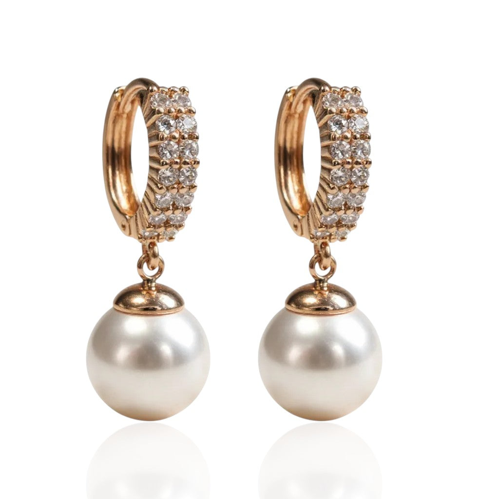 Eleganti riņķīšu auskari, kas apvieno klasisku pērļu šarmu ar mirdzošu kristālu greznību.